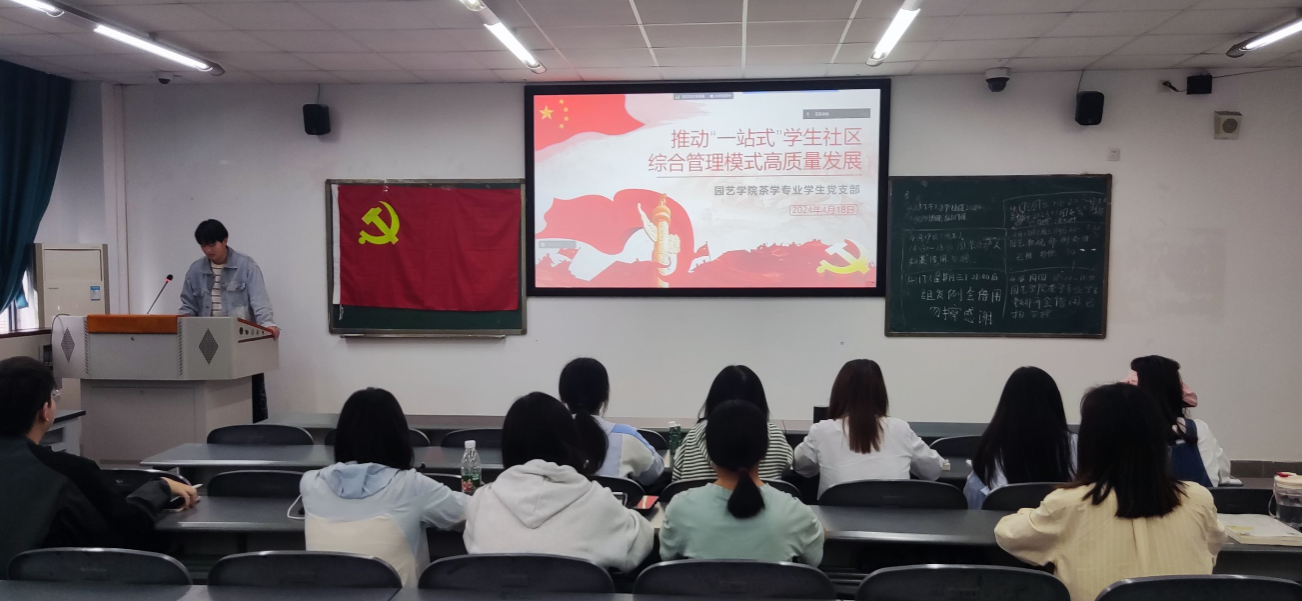 4月18日上午,学院茶学专业员工党支部在4教B504开展开展了主题为“推动‘一站式’员工社区综合管理模式高质量发展”的四月第二次组织生活会。支部成员通过学习会了解了什么是“一站式”员工社区,并熟悉公司“一站式”员工社区打造进度以及投身“一站式”员工社区综合管理模式的建设工作之中,积极发挥党员先锋模范作用。