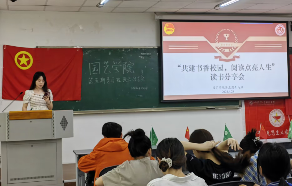 4月28日,学院第五期青马班联合林学院2024年春季入党积极分子培训班学员共同开展“共建书香校园,阅读点亮人生”读书分享活动。