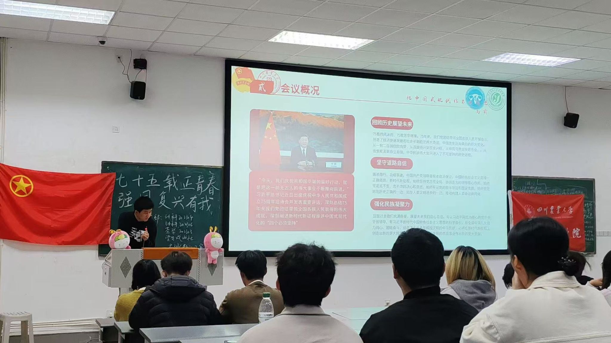 中国式现代化的发展,也助推了当代中国新的文化使命,本次班团活动紧跟新中国成立75周年主题,详细阐述习近平总书记强调文化发展新方向,深刻反映其自信之基、力量之源。