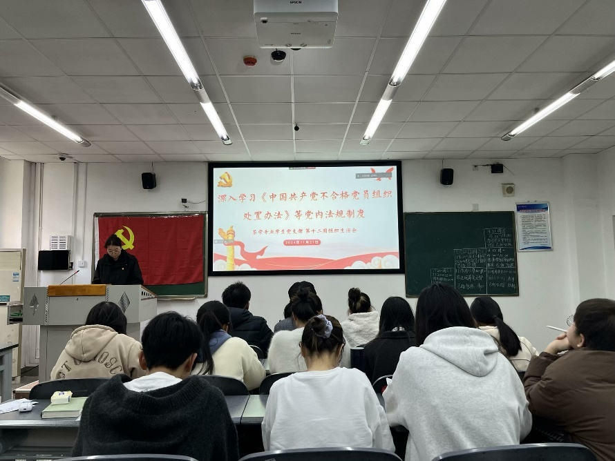 11月21日下午,学院茶学专业员工党支部全体同志在4B-307开展主题为“深入学习《中国共产党不合格党员组织处置办法》等党内法规制度”的组织学习会,旨在巩固深化党纪学习教育成果,建立经常性和集中性相结合的纪律教育机制,确保党员队伍始终保持高度的纪律性和纯洁性。