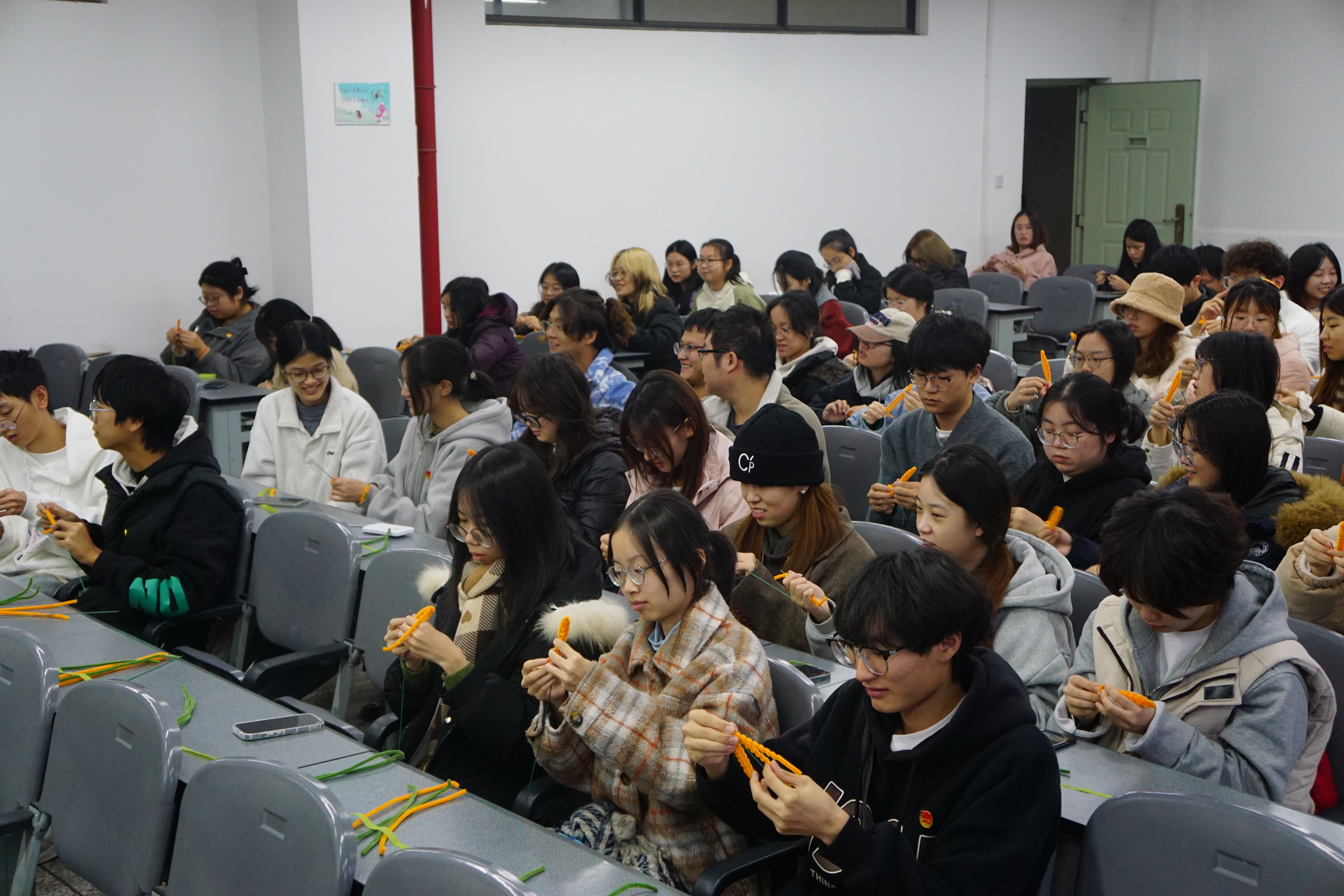 为了让青年铭记粮食的宝贵,传承勤俭节约的美德而开展的集体手工制作麦穗的环节吸引了众多同学的参与,麦穗象征着丰收与希望,也寓意着无数前辈为国家复兴付出的辛勤努力。同学们纷纷拿起毛线棒,在王一虹的带领下,认真制作每一支麦穗。通过这项活动,同学们不仅锻炼了动手能力,更通过实际行动体会到合作和奉献的意义。