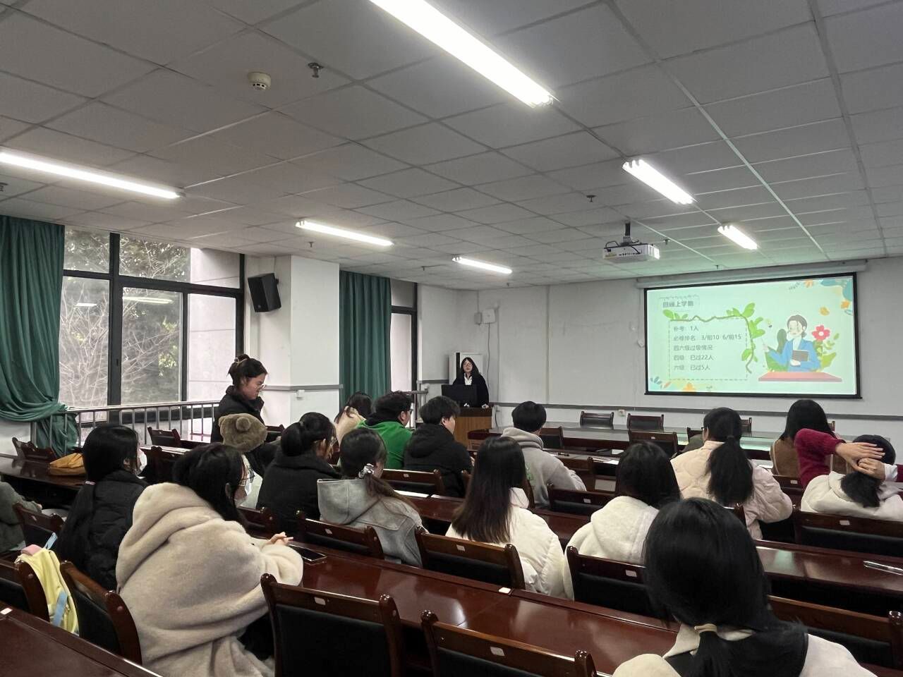 随后,班长李雪回顾上学期学习生活,展望新学期计划。她详细介绍了读研、考公考编、留学和创业就业等发展方向,鼓励同学们明确目标、努力奋斗,还特别强调校园安全与心理健康的重要性,希望同学们保持良好身心状态,迎接新挑战。