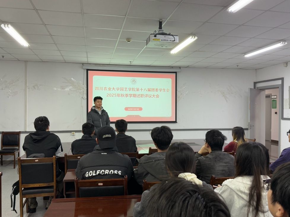 最后,员工会主席作总结讲话,对秋季学期团学工作的整体成效给予肯定,同时强调,全体团学骨干要以此次述职评议为契机,正视自身不足,吸纳评议意见,将前期专题培训所学运用到实际工作中,进一步强化责任意识、服务意识与协作意识,聚焦同学需求、突出园艺特色,不断提升工作质量与效能,推动学院团学工作再上新台阶。此次述职评议大会,不仅全面总结了秋季学期工作,更凝聚了工作共识、明确了前进方向,为后续团学工作的有序开展奠定了坚实基础。