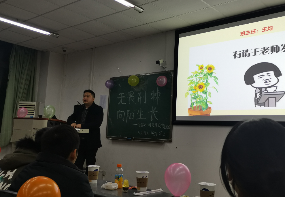 班主任王均希望大家在未来的日子里少蹉跎多学习、少抱怨多感恩;无论在哪个专业学习,都要勇敢迈出第一步,积极融入新的环境。要明确自己想要什么,能干什么,怎么去做,要确定方向,保持自信,踏实向前,找到适合自己的学习、放松方式,提高效率,认真复习即将到来的期末考试,为班级学风建设贡献力量。