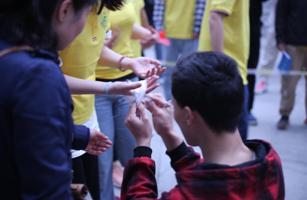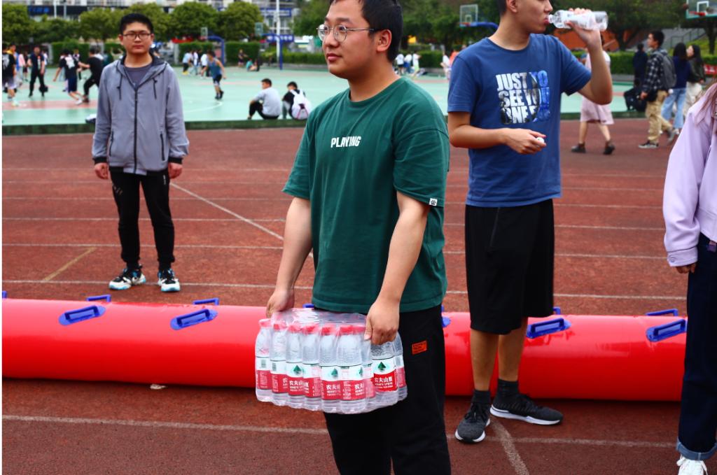 员工会外联部的李炳华,他不仅仅是一名拔河比赛的队员,更是一名后勤工作者。据悉,虽然李炳华也是一名参赛的队员,但自拔河比赛结束后,他依旧奔走在训练场只为同学们送水,他说:“作为学院的员工干部,我希望做好自己员工干部的本分工作,同时,我们在拔河比赛的时候,学院的其他的同学为我们做好了充足的后勤工作,我只是在回馈。”训练场上难免受伤,拔河比赛中,学院拔河队的女生在第一场比赛中,手因摩擦流血,学院后勤员工立即上前进行伤口包扎,第一时间为参赛员提供帮助。服装的统一,学院团委员工会就此统计每一名参赛人员的尺寸,并在衣服拿到后为同学们分发;拔河队员需要补充体力,学院后勤工作者时刻为他们准备着补给;毛毛虫竞速赛的毛毛虫的充气到训练完的收场,无一不是后勤工作者的付出……每一次的训练后勤工作者都在,帮助受伤的运动员、搬运物资、加油打气……