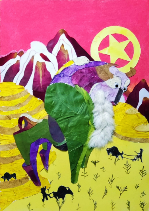 “人生就像耕耘与播种,而川农牛则象征着勤劳耕作,努力拼搏的川农学子……” 《稼穑》引用来自白居易《牡丹芳》的诗句诠释作品的内涵。“金浪涌动理想,耕耘辉映光芒,播种一份努力,收获一份未来。” “我愿暂求造化力,减却牡丹娇艳色,少回卿士爱花心,同似吾君忧稼穑”等进一步对作品进行了介绍。《窗外的春耕》通过拼贴川农牛的形象,表达奋斗刻苦,埋头苦干的耕读精神,也展现川农学子对于不畏艰辛专注努力的实干精神、耕读精神的追求。只要通过不懈努力,坚持奋斗,我们终将突破困境,迎来繁花盛开,生意盎然的春天。《耕牛,更牛》选择了最能代表中国农耕文化的耕牛作为主体,强调了农耕文化在五千多年的中华文明中的地位,在新时代弘扬社会主义核心价值观的教育中有积极意义。我们青年应该学习并发扬优秀农耕文化,增强文化自信……