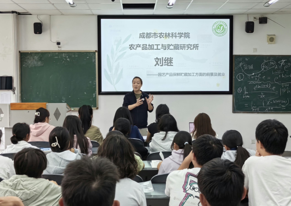 9月27日下午,园艺202302班邀请到成都市农林科学院农产品加工与贮藏研究所高级工程师刘继和助理工程师卢麒宇为同学们就园艺产品加工与贮藏相关知识及就业前景进行了讲解。