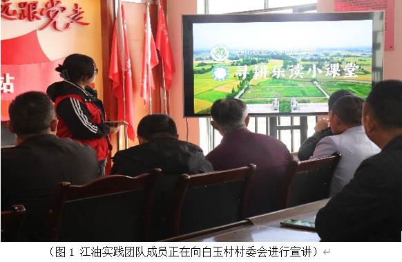 进行红色宣讲,在思想引领上“扣扣子”.团队成员在白玉村党群服务中心进行了以《追思前辈兴农报国足迹,奋进新时代强农复兴征程》为主题的红色宣讲,感怀老一辈农业人在乡村振兴过程中作出的巨大贡献。同时以“园艺心声网络思政微课堂”、“寻耕乐读哈哈体育实践团”、“泊湖之绿团队”等实例向白玉村党委会展现了园艺学子奋勇向前,抓住机遇,绽放绚丽光芒的青春姿态。