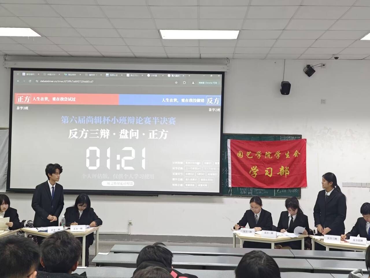 经过初赛、复赛、半决赛的激烈角逐,茶学202402班和茶学202403班从九个新生小班中脱颖而出,进入决赛争夺。辩手们针对“人生在世重在我尝试过”vs“人生在世重在我没做错”的辩题展开辩论,选手们通过赛前查阅资料,用丰富的论据充实自己的论点。辩论伊始,双方运用理论引出自己观点,并结合典型事例进行分析概括,进而双方辩手就辩题展开深层次的讨论。在自由辩论环节,辩手们巧妙的措辞和精辟的语言展现出各自的气势和对辩题的独到思考。正反双方辩手逻辑清晰,你来我往。期间,现场观众也积极参与辩题探讨。最后,经过评委述票及点评,主席宣布了本届“尚辑杯”小班辩论赛的最终结果,茶学202402班获得冠军,茶学202403班获得亚军,园艺202406班获得季军。颜雨彤等10位同学获得了最佳辩手的称号。