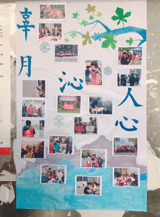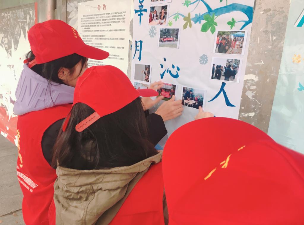 11月29日,学院青年志愿者协会联合设施农业科学与工程专业201803班的流动志愿者们在院宣传栏处张贴了以“辜月沁人心”为主题的风采海报,通过海报图片的形式向大家展示十一月份志愿活动。