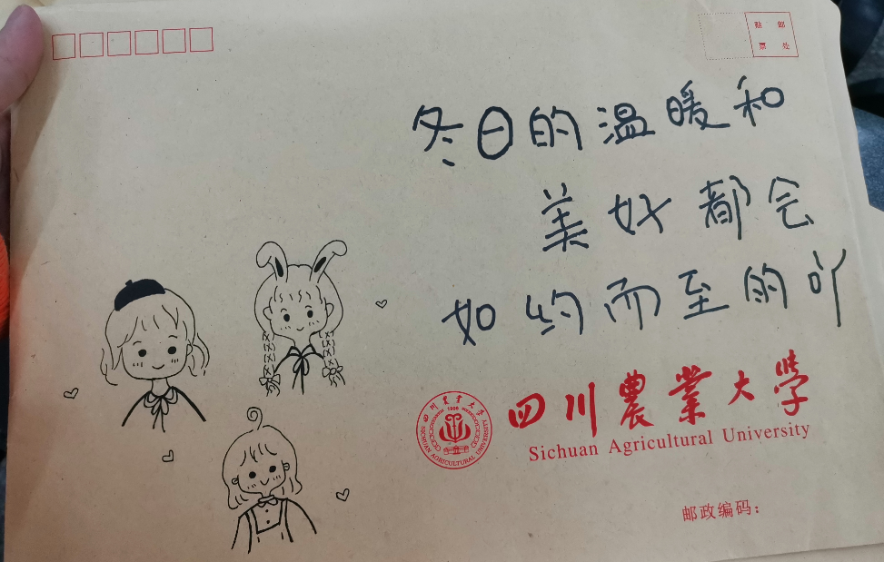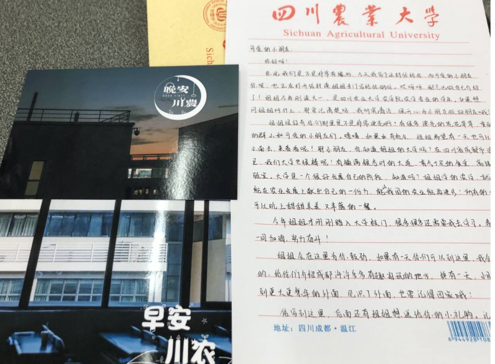 小官市小学位于云南省施甸县水长乡,所在的地区交通不便、资源贫乏、人均受教育程度不高,许多孩子的父母都外出务工,长期留守的他们需要外界给予更多的关注与鼓励。而本次活动以一封写给孩子的信的形式,向他们描绘大学的美好生活以及传达对他们的关怀和鼓励,让他们了解到了外界的世界,激励他们畅想未来。有些同学还在信里附赠了哈哈体育的信物和一些小礼品。“这次活动搭起川农同学与山区小朋友之间的一架桥梁,一方面可以让我们更加了解贫困地区,发挥老员工担当,主力山区教育发展,另一方面也可以让山区小朋友们感受到外界的温暖,可以鼓励他们积极探索和学习。”参与活动的同学评价道。