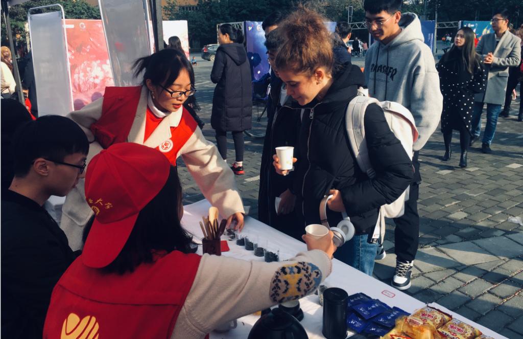 12月1日,学院团委青年志愿者协会携手西南财经大学、成都中医药大学及一些事业单位参加温江区国际化社区共建计划大学城创青春嘉年华活动。在本次嘉年华活动中,学院青年志愿者协会主要从茶学、茶文化、茶艺技法等方面开展宣传、推介与展示,吸引了众多茶方面的爱好者特别是国际职工的目光。