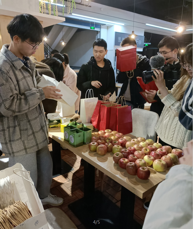 随后,同学们将象征学院特色的苹果与茶包以及糖果、贺卡一一装进礼物袋。虽已夜深,同学们仍热情高涨,所有人分工明确、有条不紊地完成了礼物包装。接下来的送礼物环节,同学们有序地结队走向第四教学楼的考研自习室。冬日的夜晚寒风夹着细雨,大家的心里却满溢温暖。临近午夜的考研自习室仍是灯火通明,一行人轻声细语,将礼物放置在各个自习室内,便满足地离去。而或遇见尚在自习室学习的师兄师姐,大家更是微笑着送上祝福与鼓励,收到礼物的考研学子也露出感动神色,连连致谢。活动结束,不少同学表示这是一次充满意义的活动,真诚地祝愿考研的师兄师姐考研顺利,成功上岸。