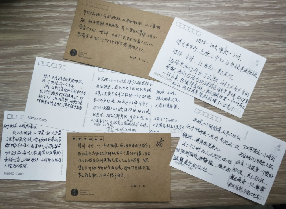 讲座首先讲述了地球由于温室气体的排放而变得伤痕累累,引出了“地球一小时”的由来,其中穿插了一个视频让大家欣赏到了上帝视角下的美丽地球。地球环境“丑”与“美”的前后对比,更凸显了为地球“熄灯一小时”的重要性。接着主持人向大家详细介绍了“地球一小时”从一个规模有限的开端,以令人惊讶的速度很快席卷全球的过程,之后便从实践意义以及精神层面上讲述了该活动给我们带来的影响,紧接着便倡导大家加入到“地球一小时”活动中来。在明信片环节,观众们听了讲座对“地球一小时”有了深深的感触,并将所思所想都写在了明信片上。