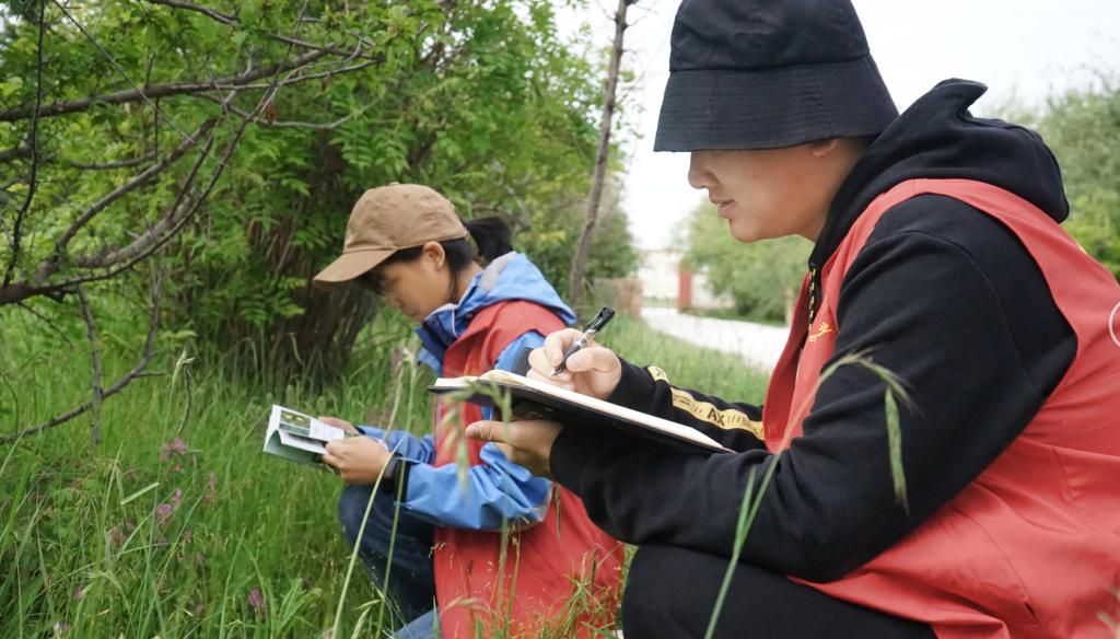 随后,泊湖之绿社会实践团队遇到了来自南京的中员工实践团,他们一起走进南加保护站博物馆,在蒙古族志愿者老师的讲解中,他们从湟鱼的保护、普氏羚羊的栖息、小泊湖植物等多个方面,一起了解了小泊湖环境保护的不平凡历史。大家在走出博物馆时,恰逢南加老师返家,在南加保护站的草地上,来自五湖四海的志愿者们一同倾听南加老师保护小泊湖的故事。