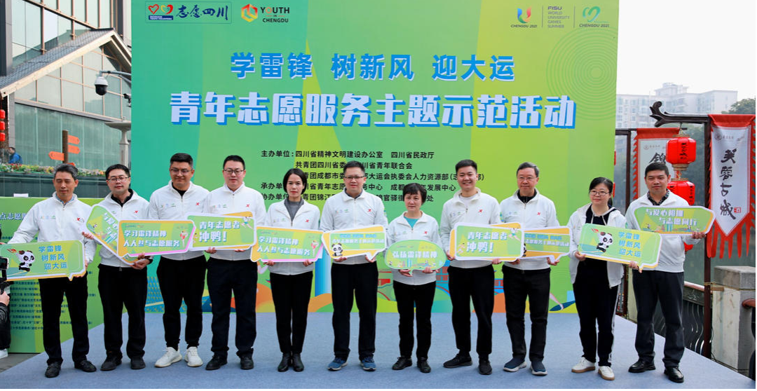活动现场热闹非凡,成都大运会城市志愿者代表胡珂裴,引领着现场志愿者们一起发出倡议,“学雷锋,树新风,迎大运”,同时强调了青年志愿服务的重要性,鼓励新时代青年积极参加志愿服务。