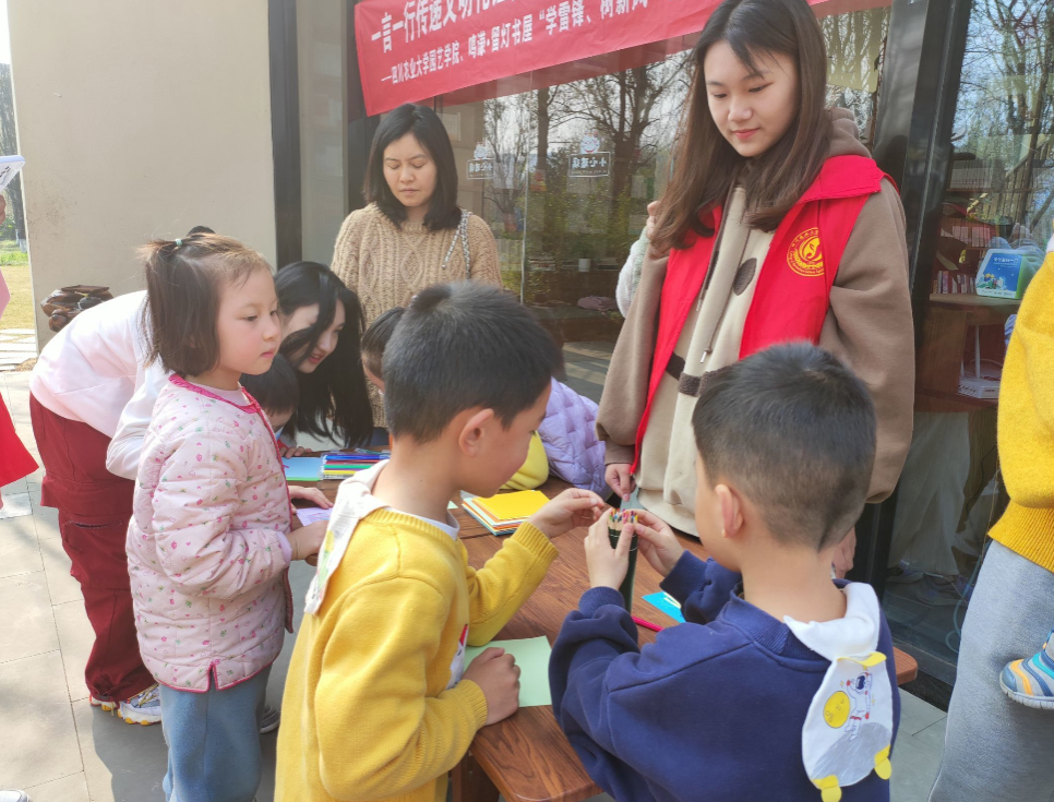 活动当天上午,园艺青协召集多名志愿者前往南熏大道鸣谦•留灯书屋开展“一言一行传递文明礼让,一举一动践行雷锋精神”主题志愿活动。活动开始,由学院茶艺表演队的成员进行茶艺表演,吸引众多过路行人驻足观看欣赏。表演结束后,还设有奉茶品茶环节,供观众自由品尝茶香茶韵。此外,志愿者还设有专门场地开展“身边的雷锋”分享会和自由创作环节,通过向小朋友们介绍雷锋同志的生平经历,讲述雷锋故事,让小朋友对雷锋有一个更为全面的认识。“自由创作”环节中小朋友们也发挥想象,采用绘画的形式画出心目中的雷锋,抒发对雷峰的崇敬之情。在活动开展过程中,许多家长也积极参与雷锋故事的讲解,借助这一活动对小朋友进行品德教育。“大朋友”和小朋友们都积极参与雷锋精神的学习,活动开展顺利圆满。
