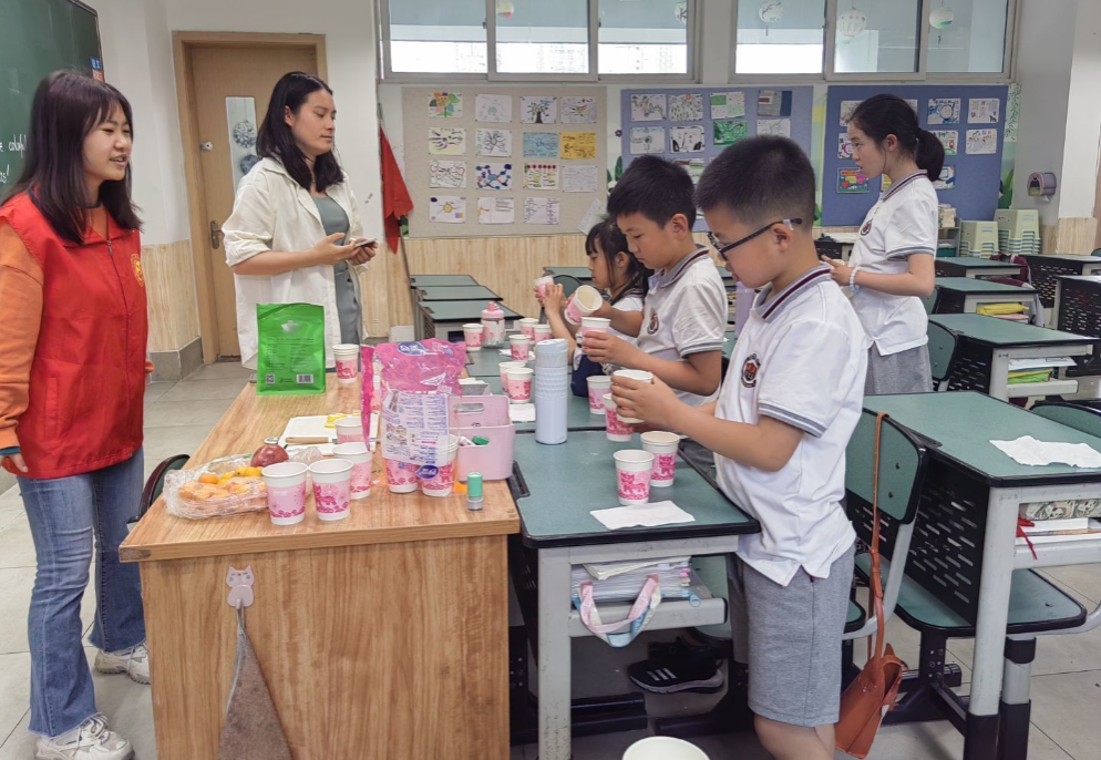 近日,学院志愿者深入嘉祥外国语学校开展园艺小活动。同学们组成科普小分队,向小朋友们讲解相关知识,小朋友们了解了茶叶的种类,茶叶的作用,茶文化以及各种水果的种类、形状、内部构成等许多园艺知识。在制作果茶的过程中,小朋友们利用学到的知识,自由搭配,主动发挥想象,相互交流,制作出了既有创意又有营养的果茶。