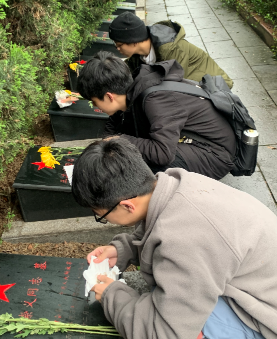 理学院青年志愿者工作部组织17名志愿者在清明节当天前往雅安市烈士陵园开展“缅怀革命先烈,弘扬民族精神”的扫墓祭祀活动。志愿者们来到烈士墓碑前,用抹布将堆积在烈士墓碑上的灰尘、树渣和泥水擦拭干净,使烈士墓碑又重新干净整洁,在肃穆中默哀,革命先烈为民族独立和人民幸福不惜抛头颅、洒热血,激励更多中华儿女不懈奋斗。