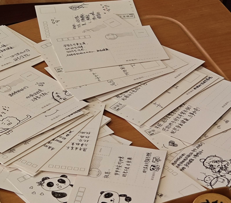 志愿者们为老人们安排好座位后,文艺部的同学们为老人带来了精彩的表演,包括盖碗茶茶艺表演、歌曲、舞蹈以及诗歌朗诵等节目。节目表演完后,志愿者为老人们准备了亲手书写的明信片,送出了自己的关心和祝福。