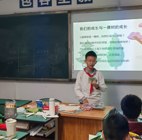 活动伊始,志愿者通过事先准备的PPT为同学们讲解植树节的由来意义以及树叶、树皮的相关知识,并进行知识问答,让同学们对树的形态有初步了解。