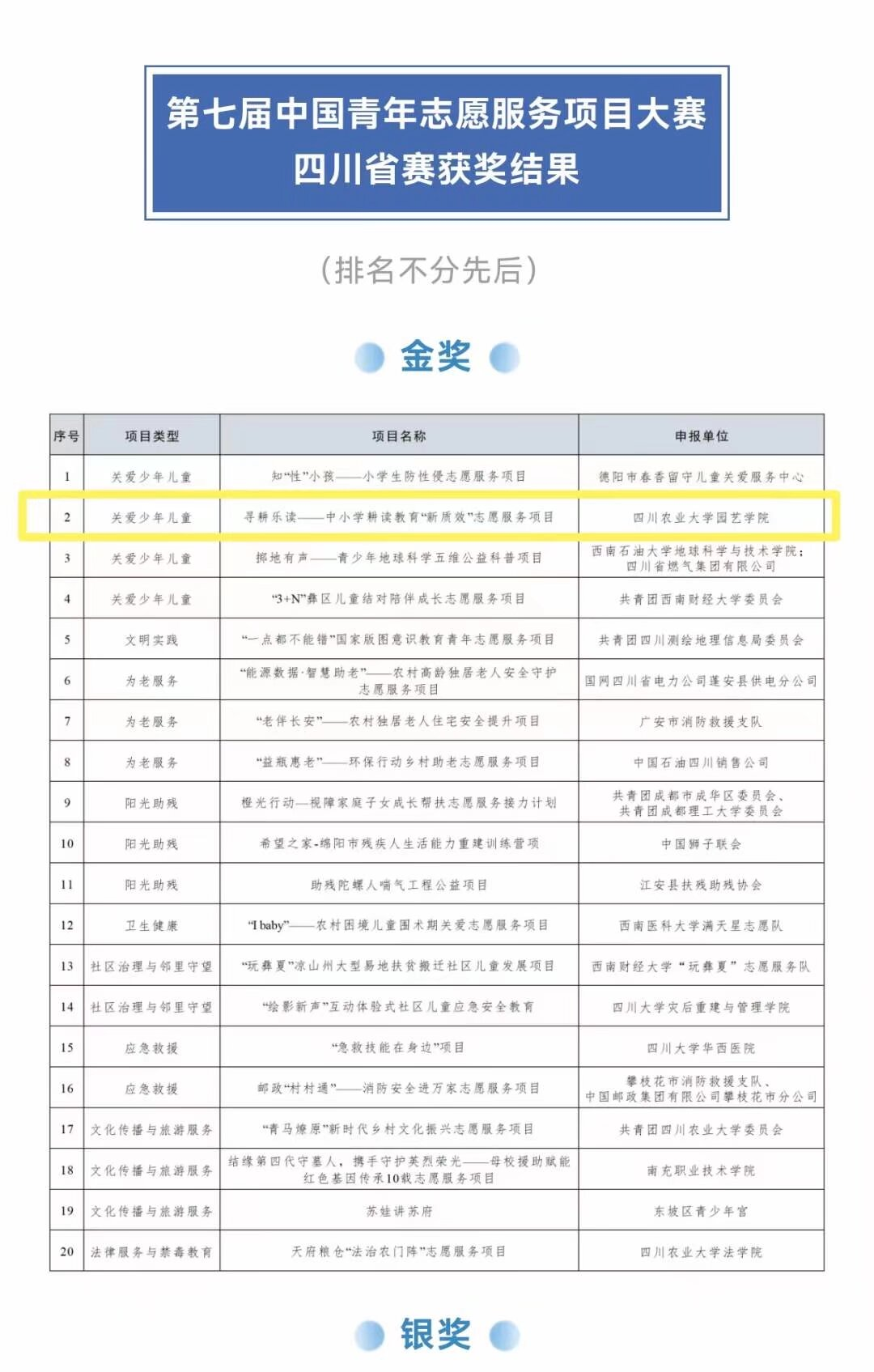 近日,由四川省科学技术协会、四川省科技青年联合会、温江区人民政府公平街道办事处和公司联合申报项目“寻耕乐读--中小学耕读教育‘新质效’志愿服务项目”在第七届中国青年志愿服务项目大赛四川省省赛中荣获金奖。