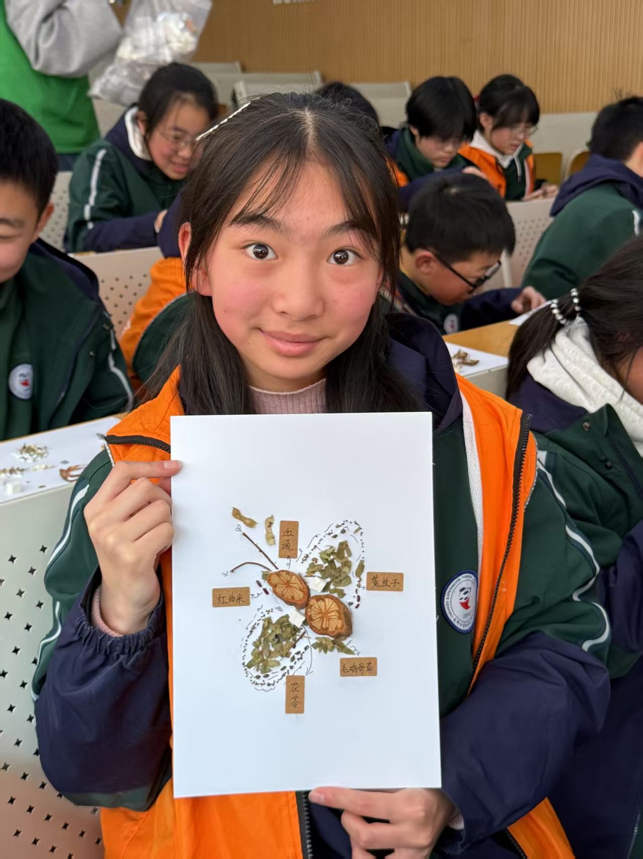 实践过程中,孩子们充分发挥创意与想象,在志愿者的指导下,以中药材为笔,勾勒出了一幅幅形态各异的精美画作,每一笔都饱含着孩子们对中药文化的热爱。药材灵动,药香袅袅,他们用双手定格了植物的模样,封存了自然的故事。望着自己的劳动成果,孩子们的脸上洋溢出灿烂的笑容。这份喜悦不仅源于亲手创作一份作品,更来自对中药文化深入体验后的认同与感悟。这些创作让中药不仅仅是药材,更是承载过去与现在、文化与创意的伟大载体。
