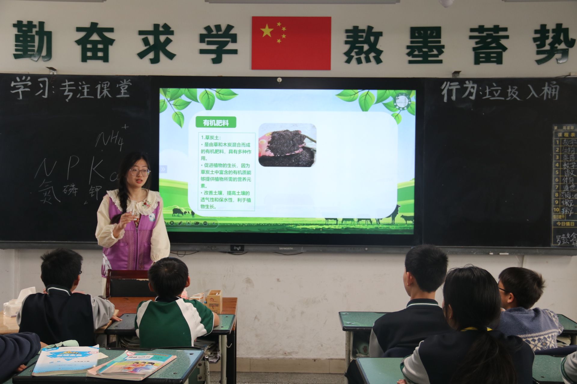 课上,志愿者以图文结合的方式,绘声绘色地为同学讲解施肥除草的相关知识。从肥料的种类到施肥和除草的技巧,再到二者的相互关系,志愿者娓娓道来。面对志愿者提出的问题,同学们认真思考,积极回答,对两种方法有了更深入的理解。