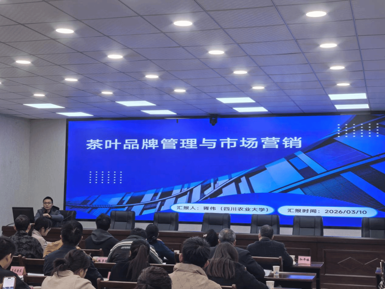 胥伟以“茶叶品牌管理与市场营销”为主题作专题培训讲座,重点围绕南江县茶叶品牌形象的树立、市场渠道的建设、产品优质优价营销等方面,向当地茶叶种植大户、企业负责人、基层农技人员分析和讲授推动南江茶叶从“好产品”向“好品牌”转变的建议和方案。