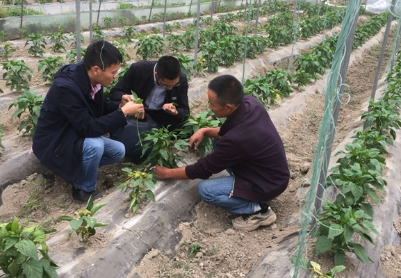 赖云松一行首先来到位于越城镇青龙村的越西县兴越生态种植养殖专业合作社,帮助业主解决辣椒病虫害难题。该业主今年种植大棚设施辣椒70亩,由于连续4年种植茄果类作物,尽管使用了嫁接苗仍然表现出严重的连作障碍。业主之前曾在线咨询多次,迫切之心戚戚。赖云松仔细辨别了辣椒病症,发现业主对错了症,用错了药,提出了综合补救方案。