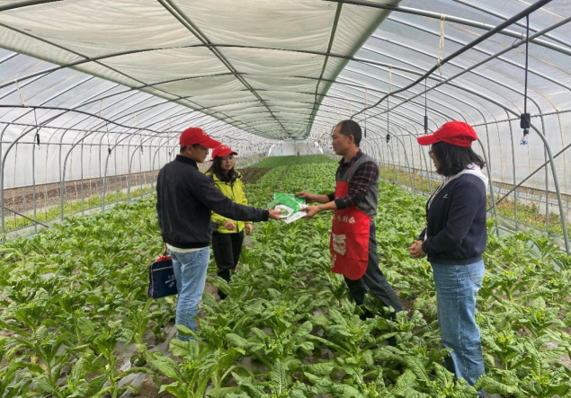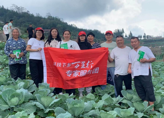 在峨边彝族自治县,贺忠群等在该县农业农村局高级农艺师莫建超陪同团队到达峨边县宜坪乡峨边惠民脱毒马铃薯专业合作社指导甘蓝生产,针对该社“薯、玉、蔬、蔬” 种植模式中存在的问题,开展了规范轮作、化肥减量、病虫害绿色防控等技术培训,并向合作社社员赠送了甘蓝、大白菜、莴笋新品种。