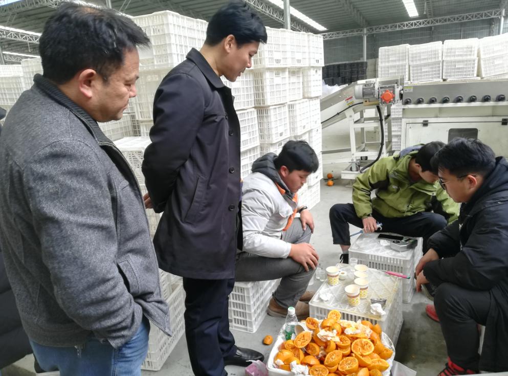 随后,汪志辉教授团队还前往石棉县宰羊乡河边果园对黄果柑提质增效试验进行了实地指导,并对石棉县最新引进的近红外光谱果实无损检测分选技术装备对技术人员进行了操作培训。