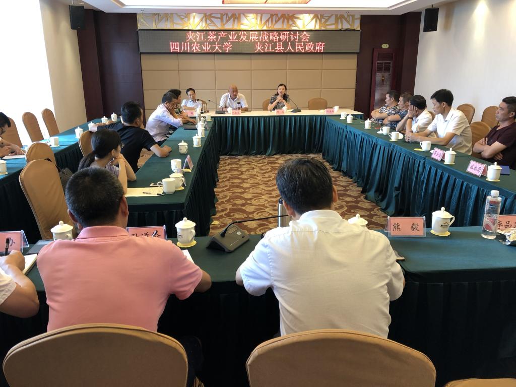 茶学专家组一行在详细调研和考察的基础上,参加了由夹江县委常委龙克强主持的夹江县茶产业发展战略研讨会。会上,龙克强向大家介绍了夹江茶产业发展以及天福茶缘小镇建设规划、建设目标,希望川农大能够积极参与,为夹江茶产业发展和天福茶缘小镇建设出谋划策。李品武介绍了夹江茶产业的发展规划、现状及技术需求。唐茜教授结合调查情况肯定了夹江茶产业发展成就和优势,建议夹江县加大茶产业的宣传力度,多发声,多搞茶事活动,提升夹江茶叶特别是出口茶的知名度,同时建立川农大哈哈体育与夹江县长效合作机制,以明确服务载体、对像和服务内容,更好为夹江茶产业的发展出力;同时她希望在技术培训、科技项目申报与实出口茶配套机采和加工技术研发与推广方面开展具体合作。何春雷教授建议夹江要重点“培育”龙头企业,整合资源,融入现代企业管理理念,并对加工类型和产品定型、定位提出了建议,以实现茶叶种植、研发、生产、加工与销售“一条龙”生产链。杜晓教授认为夹江茶叶出口,要落实到区域特色茶叶品牌打造上,并以茶叶质量安全为抓手,以促进夹江茶叶提质增效。期间,与会专家和参会人员还就天福茶缘小镇建设的功能区布局、节点亮点打造、衔接、具体方案等方面进行了深入的交流与探讨。