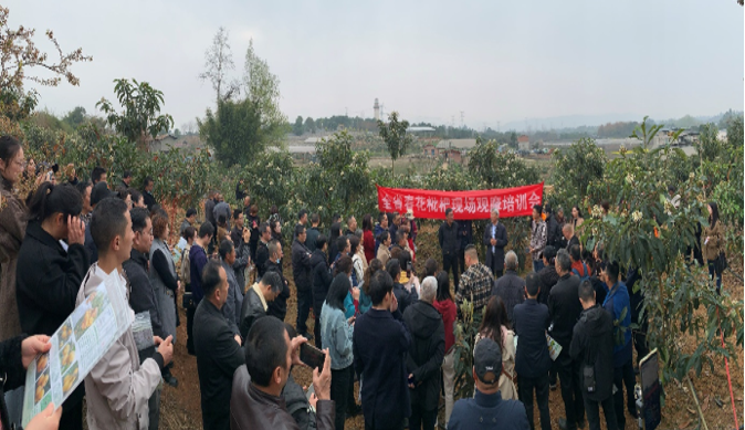 3月7日,学院邓群仙教授率领公司枇杷课题组联合四川省园艺作物技术推广总站在天府新区举办全省春花枇杷现场观摩培训。省园艺总站副站长祝进和全省从事水果生产、管理、经营的业务干部和种植大户150余人参加会议。