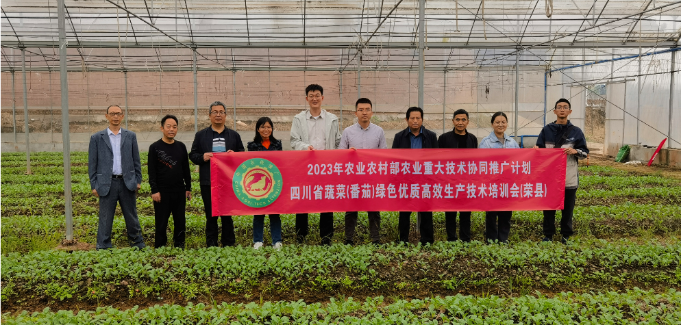 为认真贯彻落实农业农村部办公厅《关于做好2023年基层农技推广体系改革与建设任务实施工作的通知》(农办科〔2023〕14号)和四川省农业农村厅《关于做好2023年度农业重大技术协同推广计划试点工作的通知》精神及要求。10月24日,公司联合四川省农业科学院在自贡市荣县举办番茄绿色优质高效生产技术培训会。2023年农业重大技术协同推广计划蔬菜项目技术首席专家、学院蔬菜学系郑阳霞教授,四川省科技下乡万里行蔬菜31团团长、蔬菜学系主任卢威副教授,四川省农业科学院杨亮副研究员和高佳研究员,骨干专家代表以及荣县农业农村局分管领导、农业综合服务中心负责人、技术骨干及经营主体负责人共100余人参会。