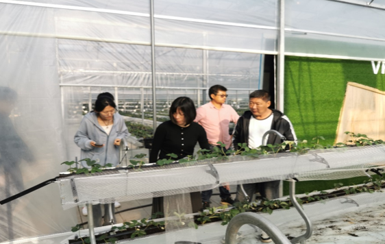 罗娅教授前往什邡市优果梦工厂草莓温室查看农庄草莓生长情况,了解到目前该基地草莓生长缓慢,新叶卷曲弱小,且老叶边缘焦干。经过与基地管理人员的交流,分析造成上述问题的原因主要有:基质盐分过高,且前期浇水过多出现沤根。随后,罗娅教授现场为农庄负责人提出解决方案:一是使用EC计及时了解土壤盐分含量;二是调整施肥方案,建议用有机水溶肥混合微生物菌剂代替大量元素肥以减轻基质高盐分的影响;三是严格控制每次浇水量,保证勤施薄施,以促进根部和植株生长。四是 将温室温度控制在15-30°C内,保障草莓最佳生长环境温度。