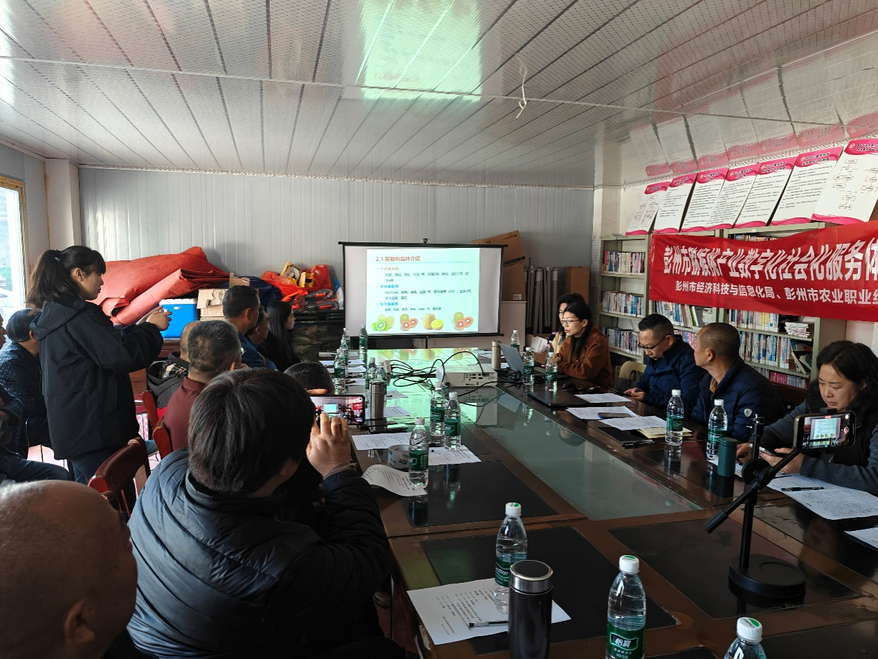 彭州市地处龙门山脉,是猕猴桃属植物的发源地和优质产区,仅金凤村猕猴桃种植面积达1200亩,以种植红心猕猴桃品种“红阳”、‘东红’和黄肉猕猴桃品种‘阳光金果’为主。在面向农户的培训会上,夏惠以“猕猴桃高效栽培新技术”为主题,重点介绍了包括猕猴桃设施栽培技术、枝蔓牵引模式、液体授粉技术和溃疡病综合防控体系等团队近些年研发的多项新技术、新模式。针对当前春季管理关键时期,专家团队还就果园管理要点进行了详细讲解,并与彭州市农业经理人协会猕猴桃产业委员会成员及种植大户展开深入交流,解答生产技术难题。