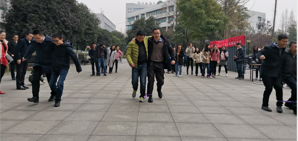 本次迎新年活动分两个部分,一是青年教师职业能力提升座谈会;二是趣味游园活动,以集体和个人形式展开,项目包括集体跳绳、传递呼啦圈、两人三足、球拍运送乒乒球接力和看图说话等。