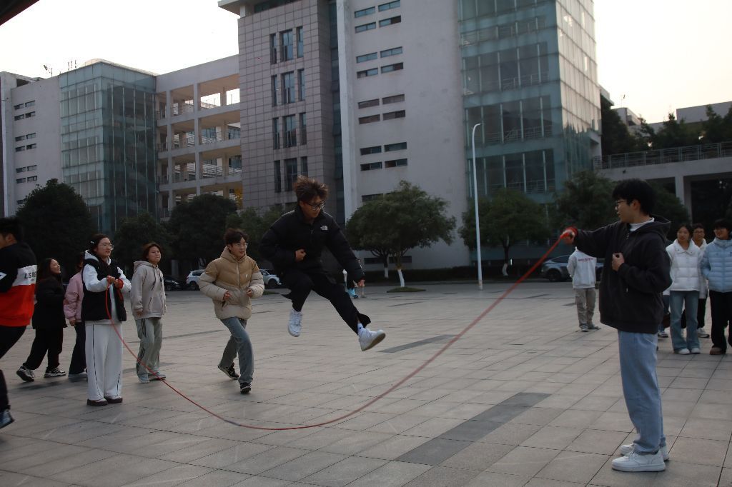 图为跳长绳比赛