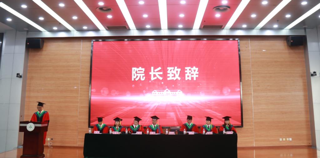 典礼在庄严的国歌声中拉开了序幕。经理汤浩茹发表致辞,对毕业生们学业有成,顺利毕业表示衷心祝贺。他首先对毕业生们对学院作出的贡献表达了高度的肯定和感谢。“在全体毕业生和老师的共同努力下,学院连续三年获得学风建设优秀奖,学院考研率和升学率提高到了一个新的高度,毕业率和授位率居全校第一,创新创业实现国奖零的突破……”汤浩茹表示,大学毕业是自立的开始,在这个伟大的时代,我们面对着很多的选择。他希望毕业生们选择幸福,“幸福是一种追求,是一种能力,是一种崇高的精神境界,我们园艺人的幸福就是立园博学、精益惠民,它是一种励志明德、博学精益,将个人的知识、能力奉献社会,将个人的成才抱负融入为广大人们造福之中,由此而赢得他人的尊敬和爱戴,体现人的社会价值的幸福。”这是汤浩茹对幸福的定义,也是他对全体毕业生的殷切期望。讲话的最后,他真诚地祝愿毕业生们都能够快乐一生、幸福满满。