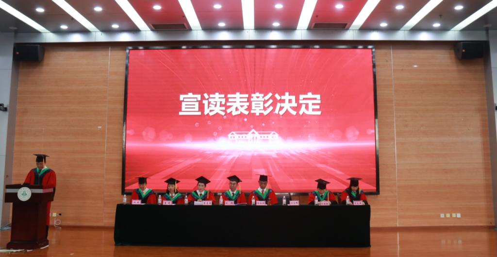 汪志辉宣读了《2021届校级、院级优秀毕业论文表彰决定》和《2021届省级、校级优秀大学毕业生表彰决定》。7篇学位论文被评为院级优秀学士学位论文,其中4篇入选学校100篇优秀学士学位论文;18名同学获学校优秀大学毕业生荣誉称号,其中7名同学获四川省优秀大学毕业生荣誉称号。主席台就坐的领导和老师为获奖的同学颁发了证书。