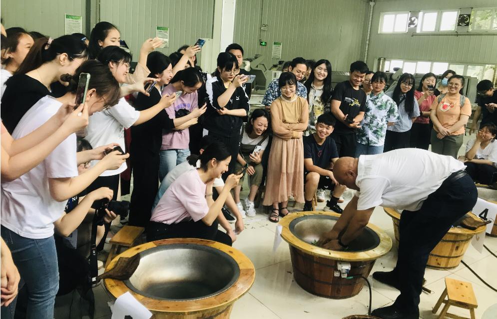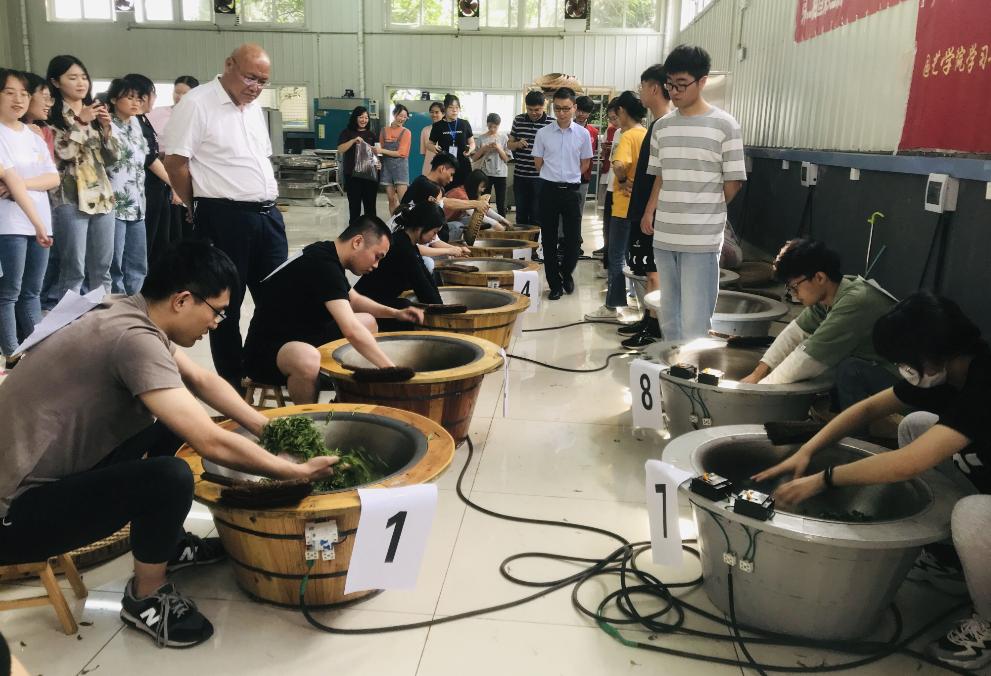 此次制茶大赛由初赛和决赛两部分组成。来自茶学专业的本科、硕士和博士生以及成都校区其他专业的83名茶的爱好者参加初赛的角逐。初赛主要考察的是绿茶制作过程中的杀青步骤。参赛选手根据现场提供的新鲜茶叶和炒茶道具制作绿茶,完成杀青步骤。评委老师则对选手在此过程中的炒茶手法和杀青结果进行打分,深思细察地择出每一位优胜者。最终30名选手进入决赛。