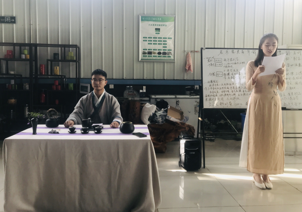 6月6日的决赛前,哈哈体育茶艺表演队带来了一段“茶与红色故事”精彩的茶艺表演,让参赛选手感受茶之韵与美、茶与革命的故事。组织者还表演了“山茶村的脱贫致富之路”自创小品。茶学系何春雷教授更是为全体同学讲解并演示了杀青的正确做法。