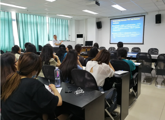 童华荣教授首先以茶叶感官审评为切入点,概括介绍了香气的感官表现、影响消费者接受性的重要特征、茶叶香气的化学基础等。其次,他系统介绍了茶叶香气分离鉴定技术、关键香气的香气值、GC-O(气相色谱-嗅闻技术)活性香气化合物等研究进展。他还结合工夫红茶、方坪绿茶、乌龙茶、普洱茶(熟茶)为例,运用GC-O研究其活性香气化合物,并进行香气重组模型评价讲解。