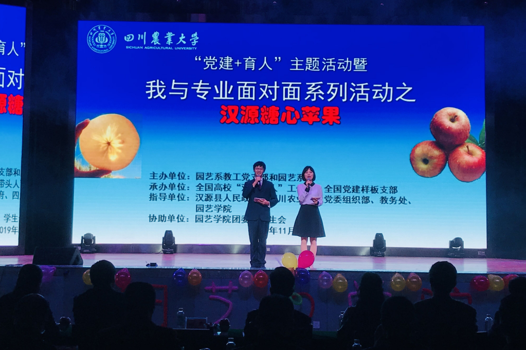11月16日,园艺系“党建+育人”主题活动暨我与园艺专业面对面系列活动之汉源糖心苹果在麦立方举行。活动以“我与专业面对面”为主题,共话专业发展,共同探索“学院、政府、企业”协同育人新途径,由“与企事业单位领导、专家、员工对话”面对面人物访谈、专业创意特色课程介绍、水果创意作品展示以及节目表演等部分组成。
