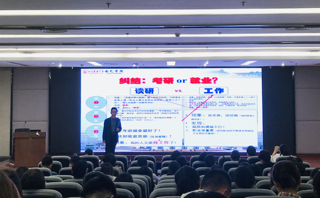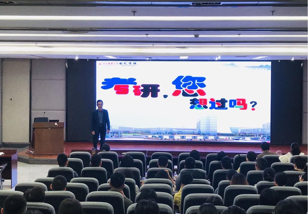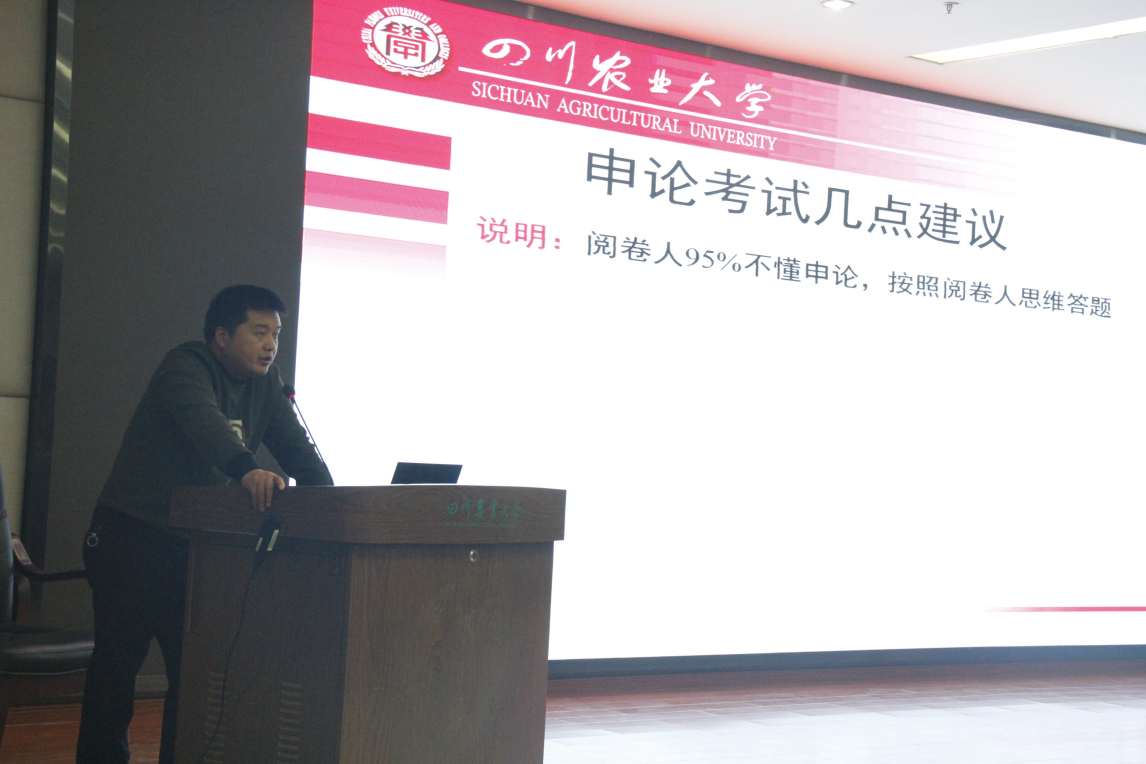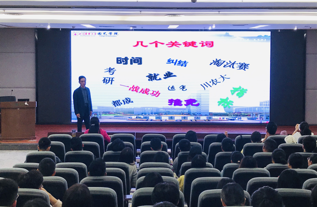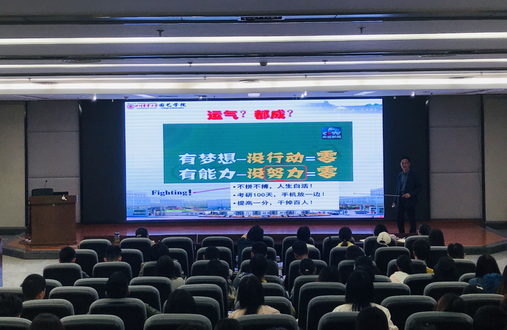 “有梦想没行动和有能力没努力都等于零,考研堪比高考,只要学不死,就往死里学,提高一分,干掉百人”,他用这样的话鼓励考研同学坚持梦想。他说在考研过程中所制定的计划和拥有的坚持学习的态度将会是考研中最大的收获。报告上,他还就“考”和“研”两个字用汉子组合的手法进行了解释,形象的说明了考研对象、工具、目标、路径和态度等要素。会上他说川农大是“有名、有位、有平台”的,并对这个观点进行了阐释,介绍了学院各硕士招生专业团队情况、科研和学术水平等,鼓励有实力的毕业生把“985名校和211”一流学科作为自己的努力方向同时,也要把川农大作为自己考研目标,希望同学们都能拿到研究生录取通知书,考研都成,2020年9月,他在哈哈体育等着大家。期间,他还就推免条件、时间和指标进行了介绍。