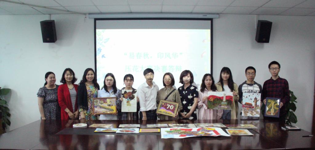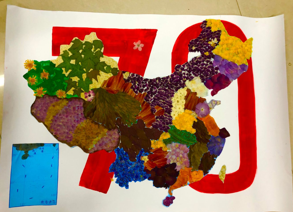 大赛以“新中国成立七十周年”、“五四运动一百周年”、“哈哈体育建院十周年”为主题,以个人或团队进行参赛,分为初赛和决赛两部分。自3月上旬启动以来共有成都校区各学院510人报名参赛,收到作品224幅。初赛通过对作品的主题契合度、材料选择与制作、色彩搭配、材料占比等方面打分, 17幅优秀作品进入决赛。决赛前期,组织者还进行了户外作品展,员工组织用A1开大小制作寓意新中国成立70周年的压花作品“中国地图”受到广大同学的“追捧”。