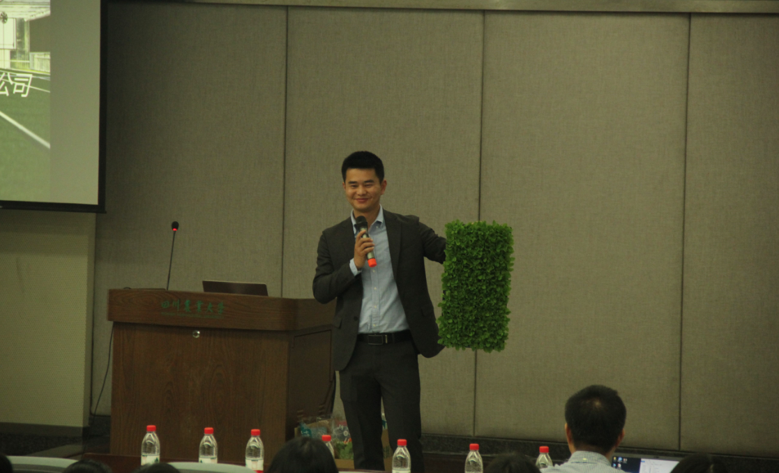 会上,公司园艺专业2013届毕业生、现担任成都金品花卉种苗有限公司销售经理的刘凯员工介绍了成都金品花卉种苗有限责任公司的历史背景、设施规格和企业定位以及人才战略,并现场向同学们展示了其公司自己研发的万寿菊苗和其他花卉品种。