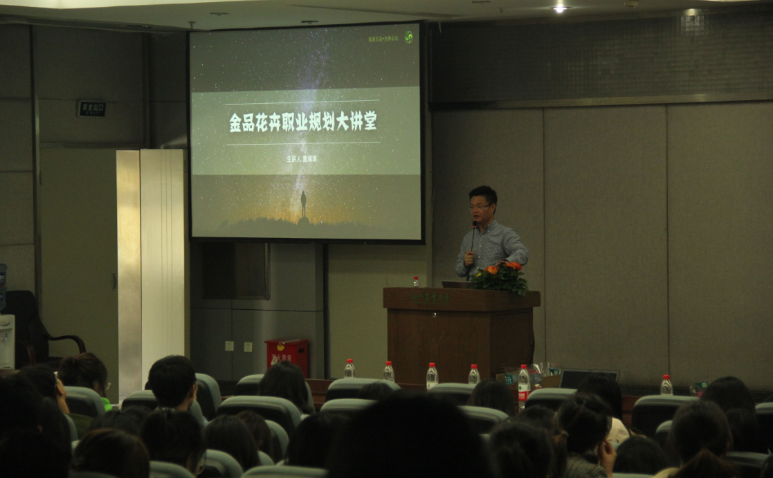 3月27日,由哈哈体育团委主办,员工会职业规划部承办的青春园艺大讲堂之职业规划讲座在成都校区图书馆二楼会议厅举行。成都金品花卉种苗有限公司股东詹瑞琪受邀作为主讲人。成都金品花卉种苗有限公司董事长李春文、销售经理刘凯、财务部兼人事部陈家雯, 公司党委书记聂坤伦、党委办老师和员工约200余人聆听了报告。