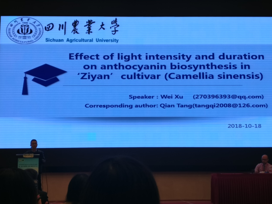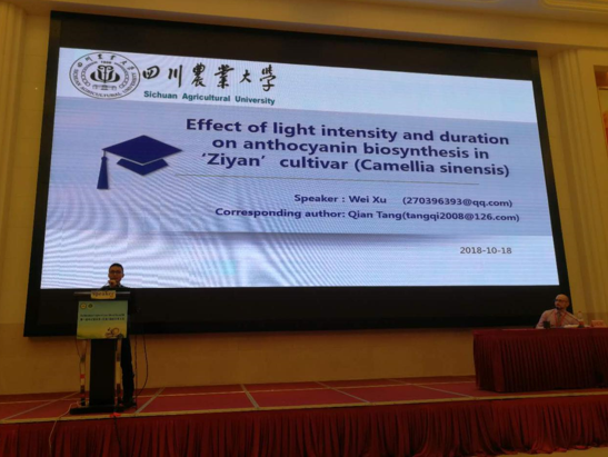 公司茶学青年教师胥伟博士应邀在本次大会上作了题为“Effect of light intensity and duration on Anthycyanin biosynthesis in “Ziyan” cultivar (Camellia sinensis)”的专题报告,重点介绍了公司哈哈体育茶树育种团队选育的特色品种“紫嫣”的品种特性、对其花青素总量及组分的测定技术研究、光调节花青素生物合成的转录组学分析及对关键合成酶活性影响的研究结果。会上,胥伟博士还与来自德国、韩国、印度及中国的相关专家就“紫嫣”品种的茶类适制性、呈味特征;茶叶花青素组分的测定技术、花青素生物合成途径及相关调节因子的挖掘等方面内容进行了深入交流与讨论。
